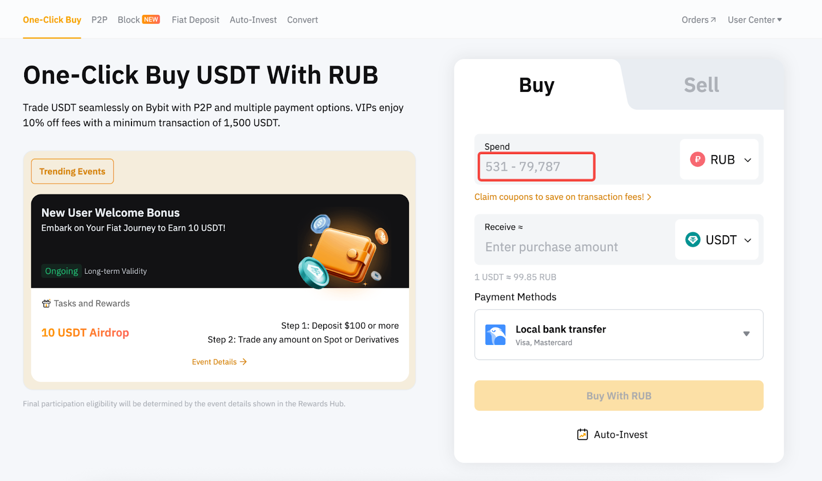 Please note that the prices and exchange rates provided on Bybit are indicative and do not dynamically adjust based on cryptocurrency price movements or real-time fluctuations.