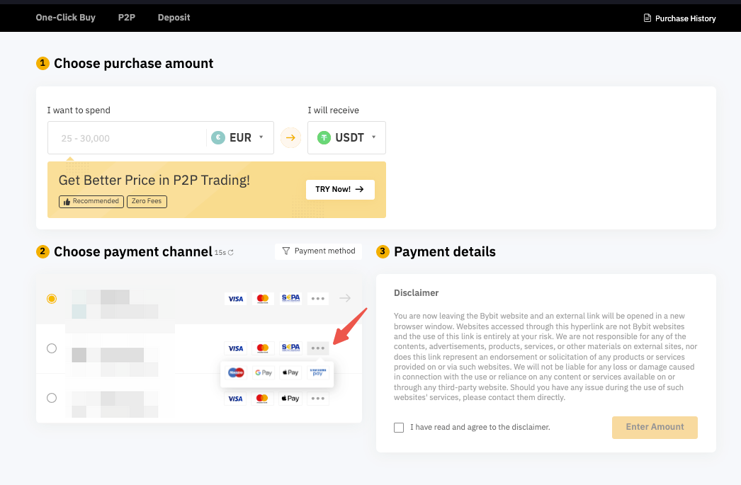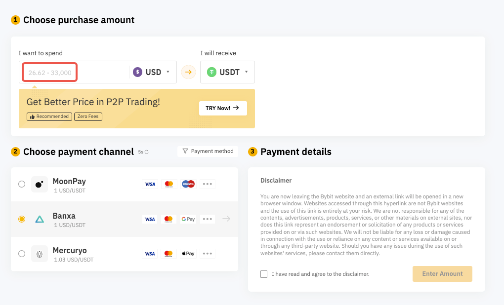 Is there a minimum/maximum limit per transaction if I buy crypto using third party service provider(s) on Bybit?