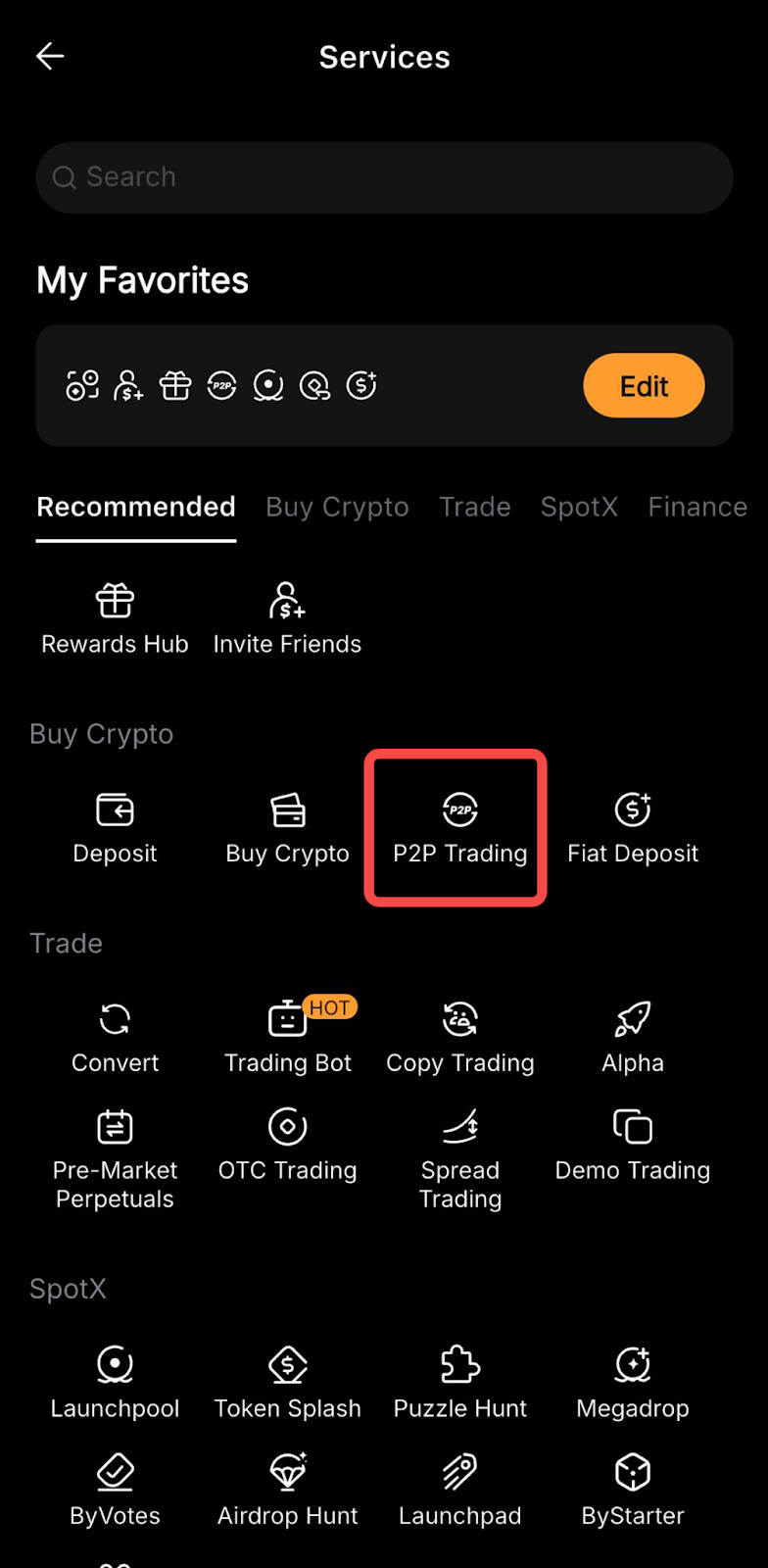 — P2P transactions with Fiat will only be processed via the Funding account so please ensure that your funds are in your Funding account before starting a transaction.