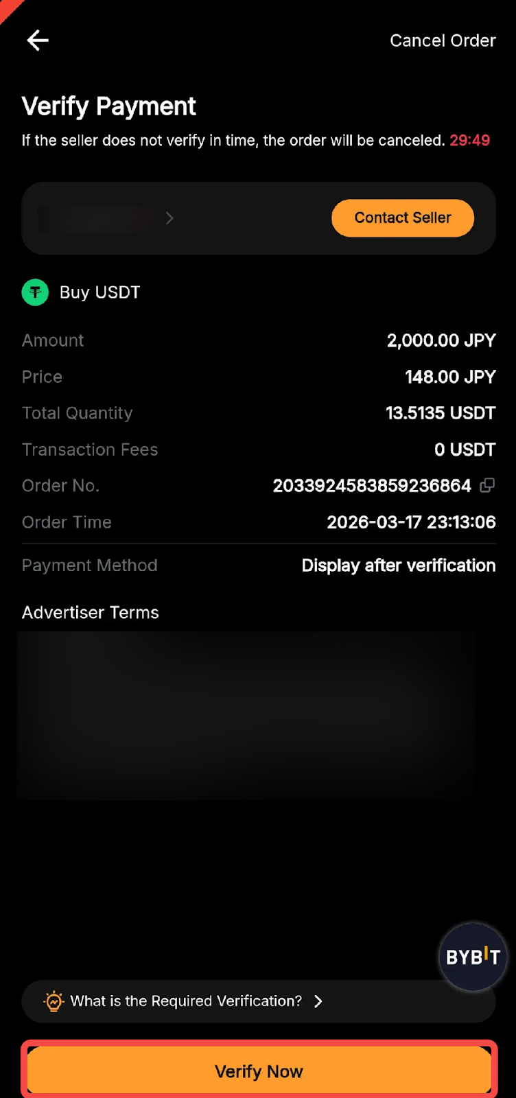 Tap on Verify Now for a guide on completing verification, and then proceed to provide the required verification documents in the Order Chat Box. After completing the verification, wait for the seller to verify your documents. For a more detailed guide about completing verification, please refer to Step 5 in this article.