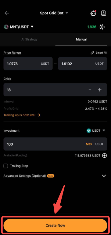 1. Create a Spot Grid Bot