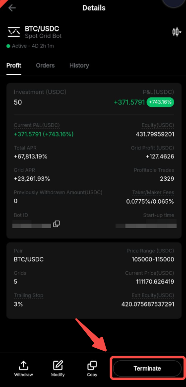 5. Terminate Your Spot Grid Bot