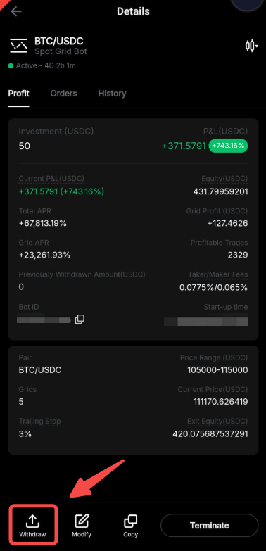 4. Withdraw Spot Grid Bot Profits