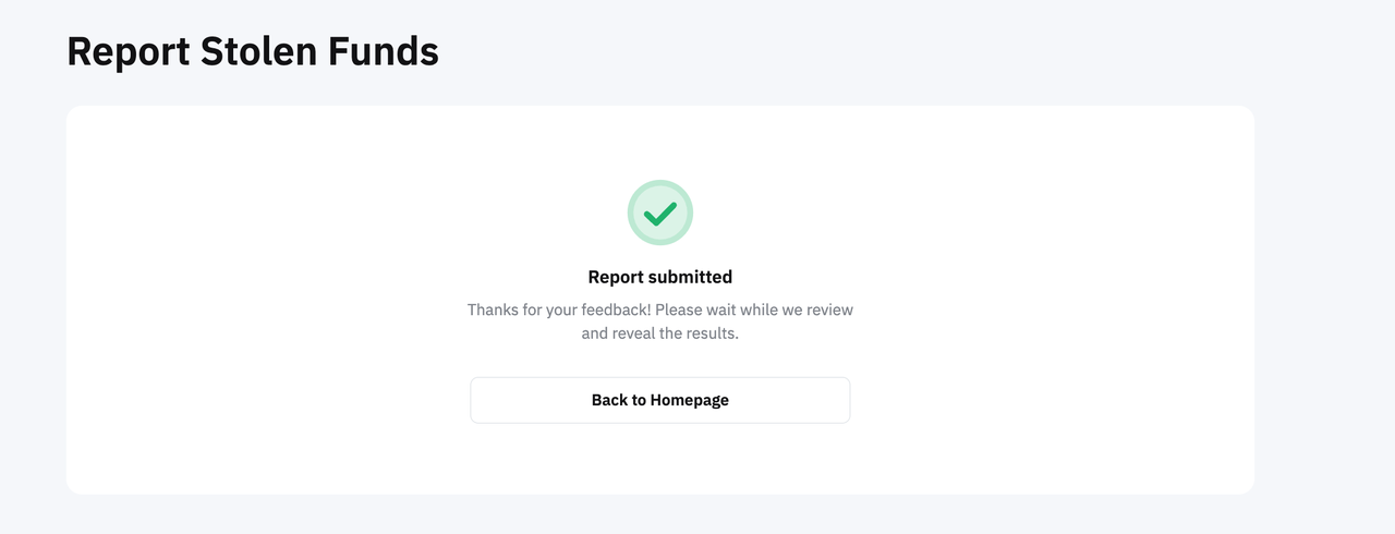 Step 2: Confirm your details on the Report Stolen Funds page.