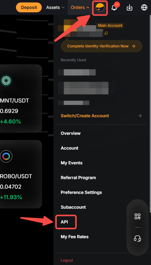 Step 1: Log into your Bybit account and navigate to your API Management page by clicking on your Account icon → API.
