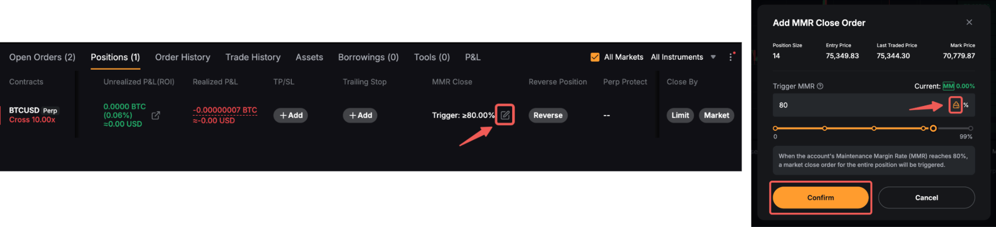 Click Add under MMR Close on your position tab. Then, set the Trigger MMR as desired.