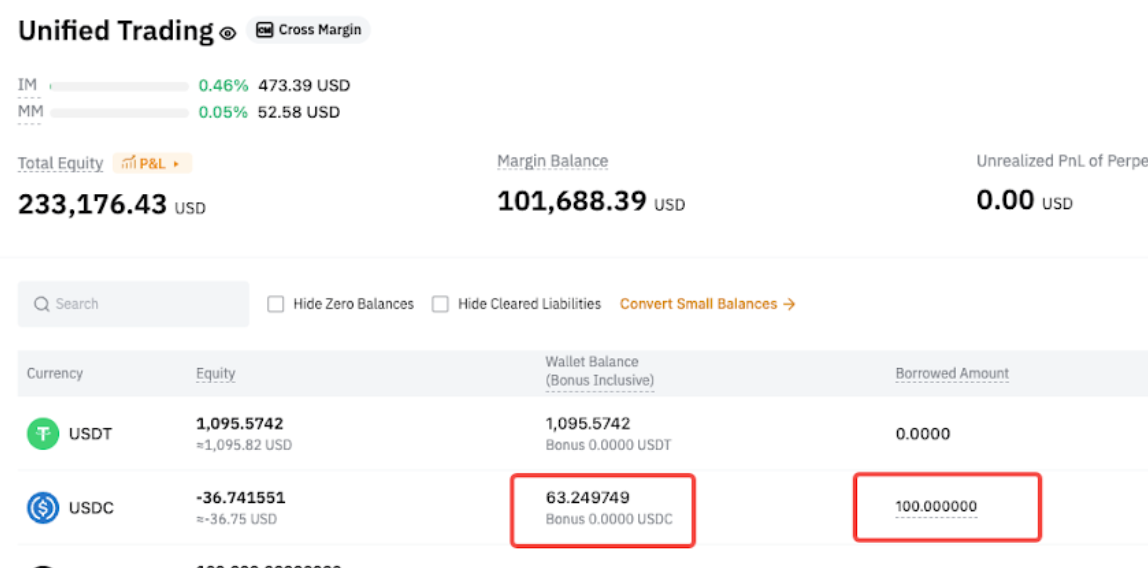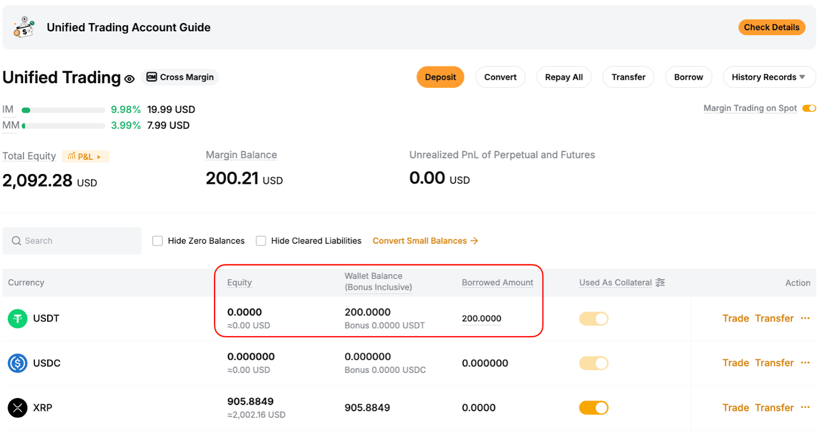 Example Before borrowing: - USDT equity = 0