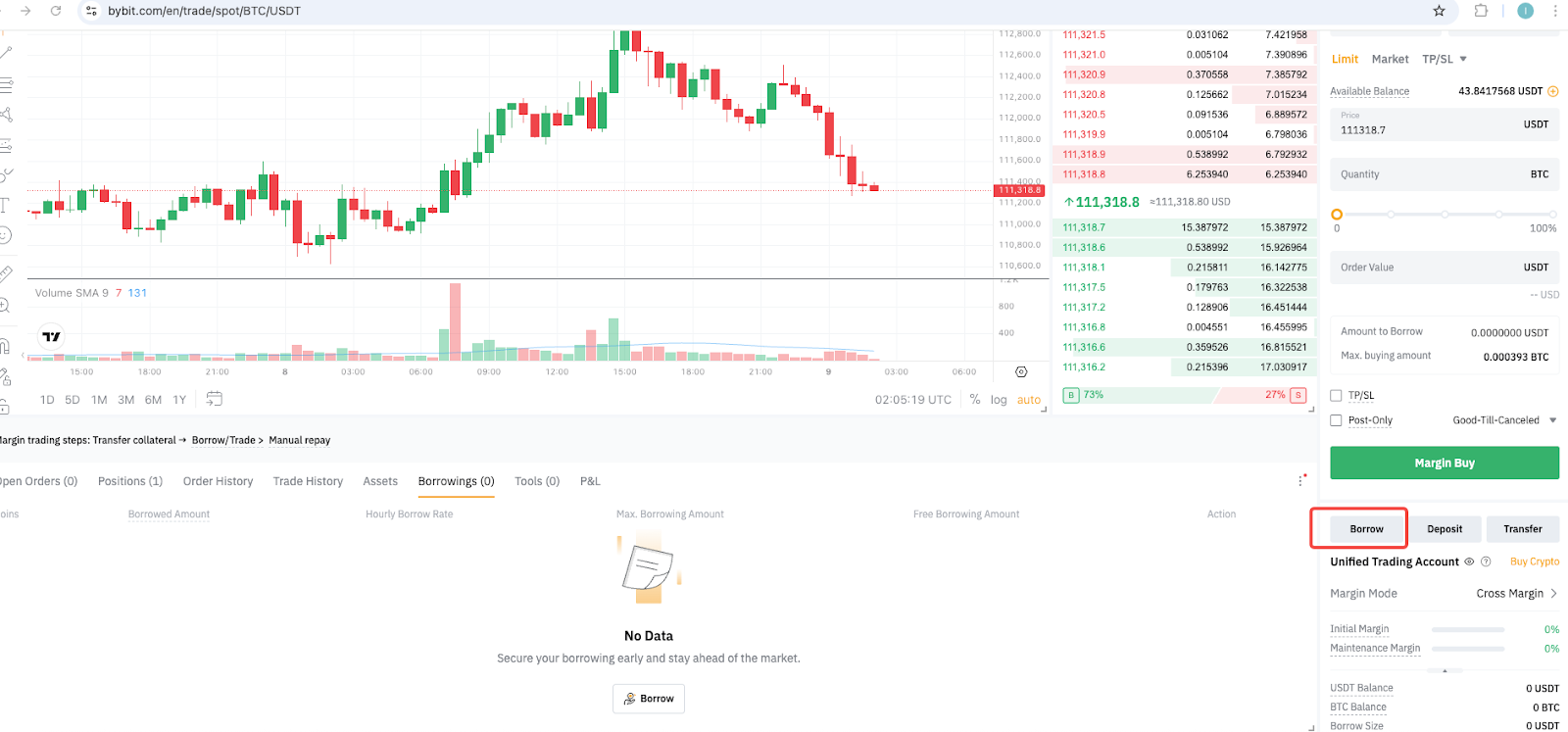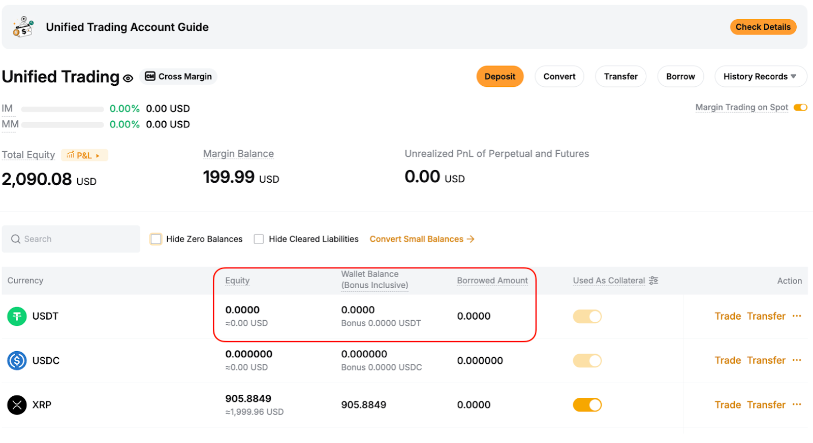 For example, if you borrowed BTC but don't currently hold any, buying BTC with USDT via the BTC/USDT Spot pair will automatically count as a repayment. The BTC you receive is treated as if it were transferred into your Unified Trading Account.