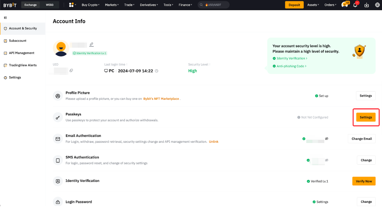 Методы верификации ключа доступа могут отличаться в зависимости от вашего устройства. Ниже представлено пошаговое руководство по добавлению ключа доступа на веб-сайт Bybit. Используйте наиболее часто используемое устройство, чтобы добавить ключ доступа на аккаунт Bybit.