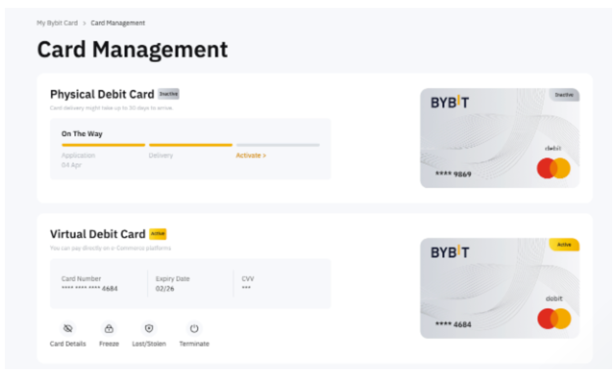 Тепер ви можете керувати своєю віртуальною та фізичною карткою Bybit на сторінці Управління картками.