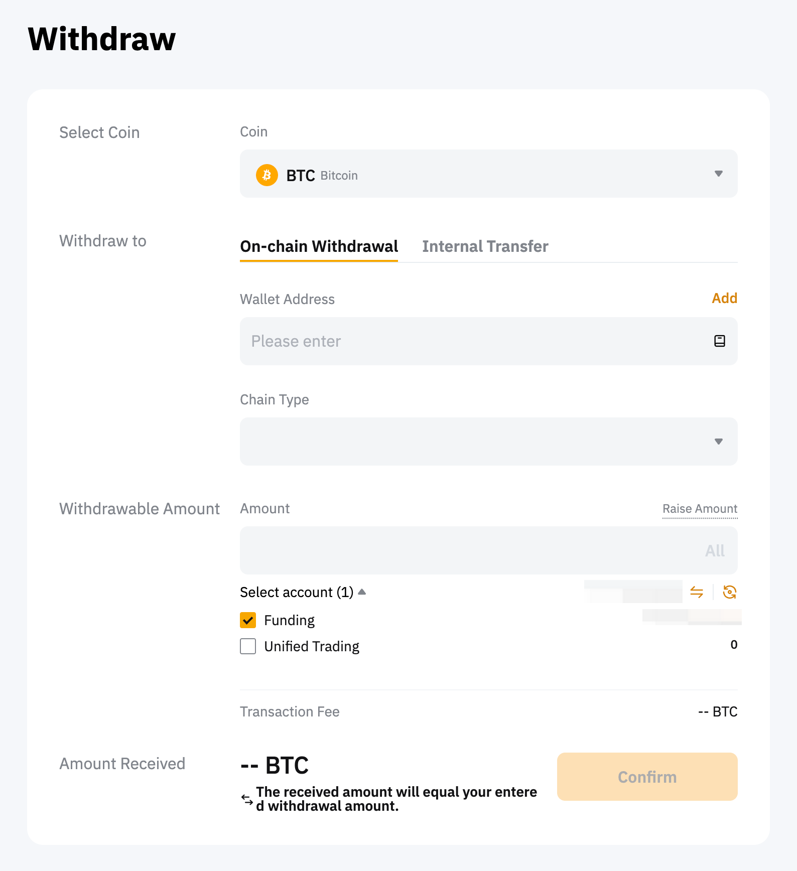 Примітка. Ваші кошти повинні бути на акаунті Фінансування, щоб вивести їх на ваші гаманці.