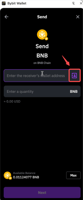 Крок 2. Введіть адресу гаманця-отримувача або виберіть її з адресної книги.