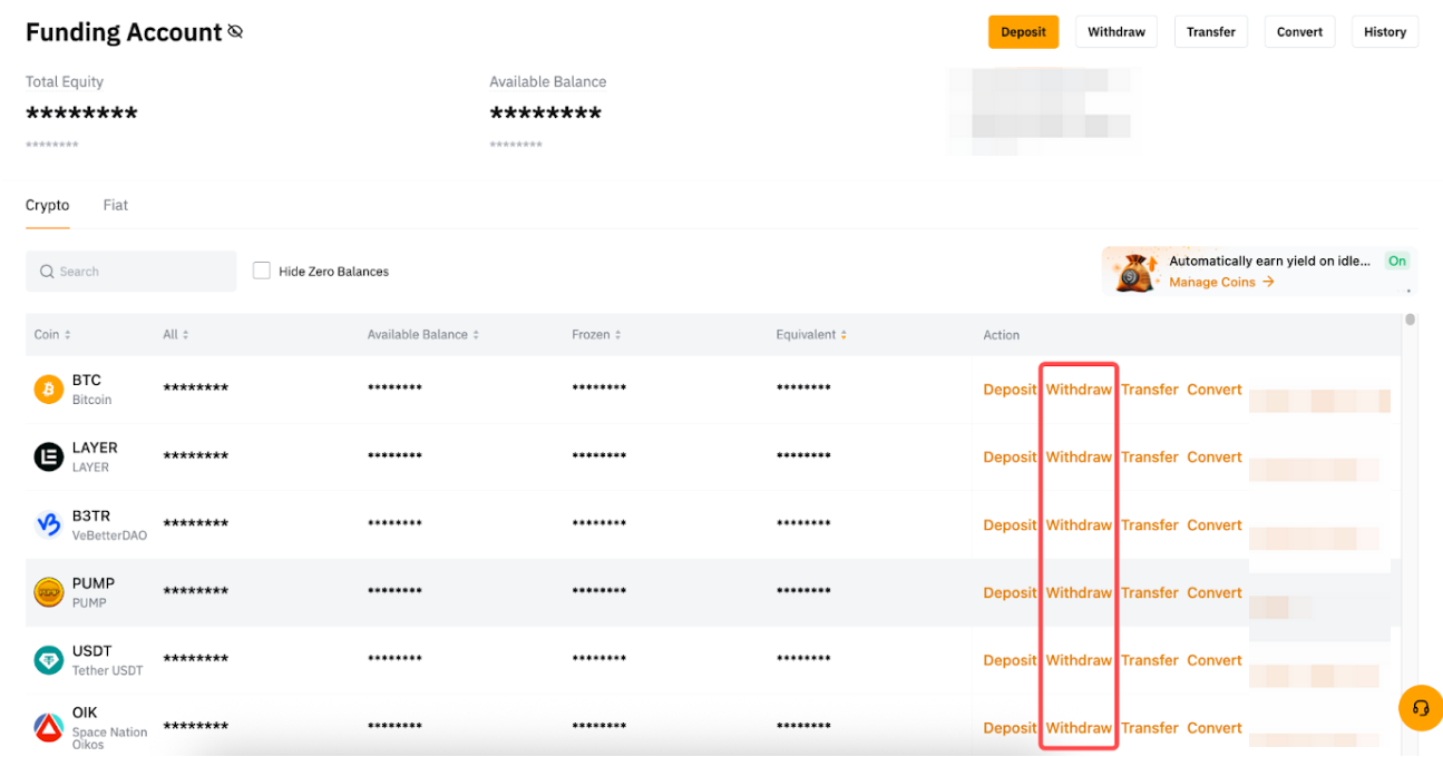 Або перейдіть на сторінку акаунта Фінансування та натисніть Виведення під монетою, яку хочете вивести.