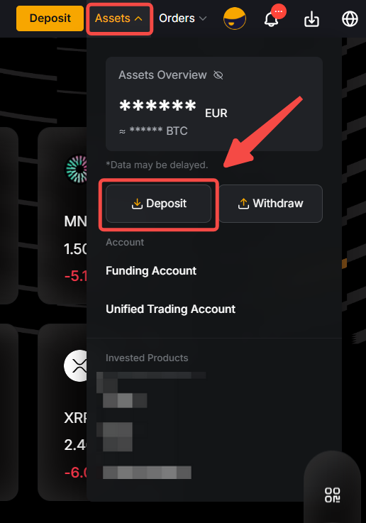 Ngoài ra, bạn cũng có thể di con trỏ chuột qua Tài Sản ở góc trên cùng bên phải của trang chủ Bybit. Sau đó, nhấp vào Nạp để vào trang nạp tiền.