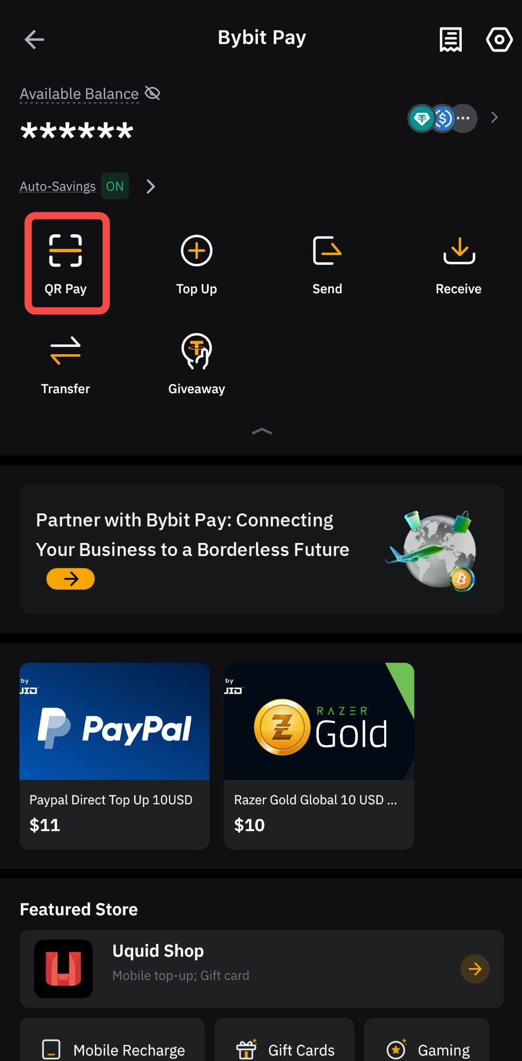 目前,二維碼支付僅在 Bybit App 上提供。使用者必須先完成驗證,然後點擊二維碼支付圖標才能開始。